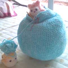大きい上に糸が柔らかいので自立しないんですが、それじゃあ形のバランスがわかりづらいので途中まで綿を入れる事にしました。